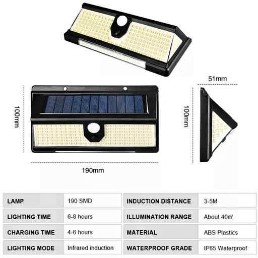 ✅Lámpara Solar con Sensor de Movimiento y 190 Led brillantes